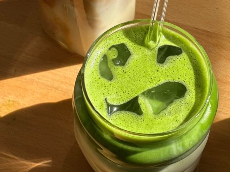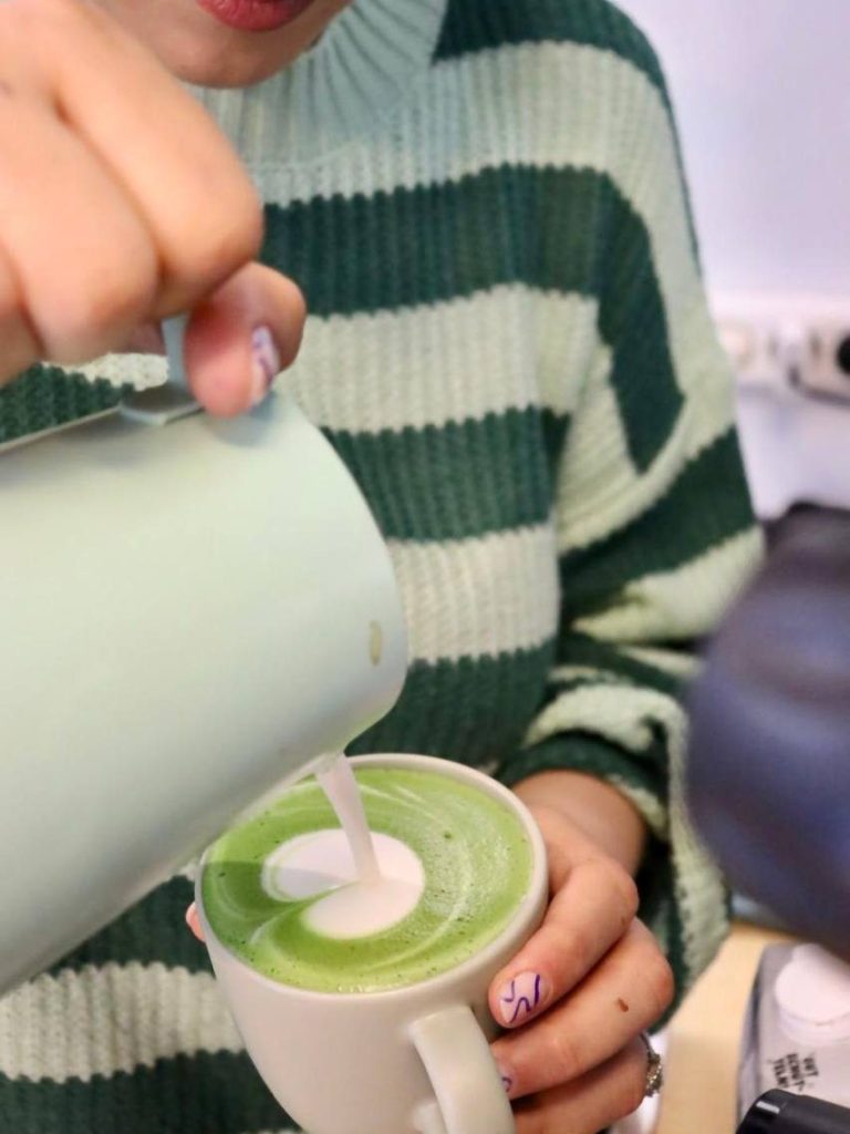 Wir machen unseren Matcha mit dem Pulver von Noritual Lab.